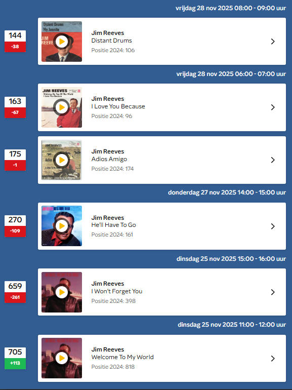 jim reeves with 6 songs in the 2025 dutch evergreen top 1000